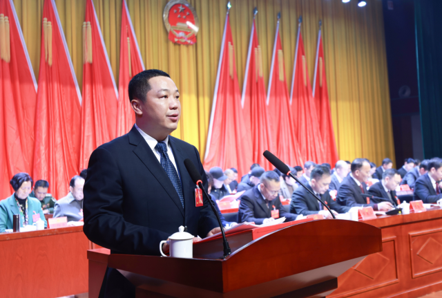 在热烈的掌声中,县长彭润金代表县人民政府向大会作政府工作报告。报告共分为2025年和“十四五”时期发展回顾、“十五五”发展的主要考量、2026年工作安排和加强政府自身建设四个部分。